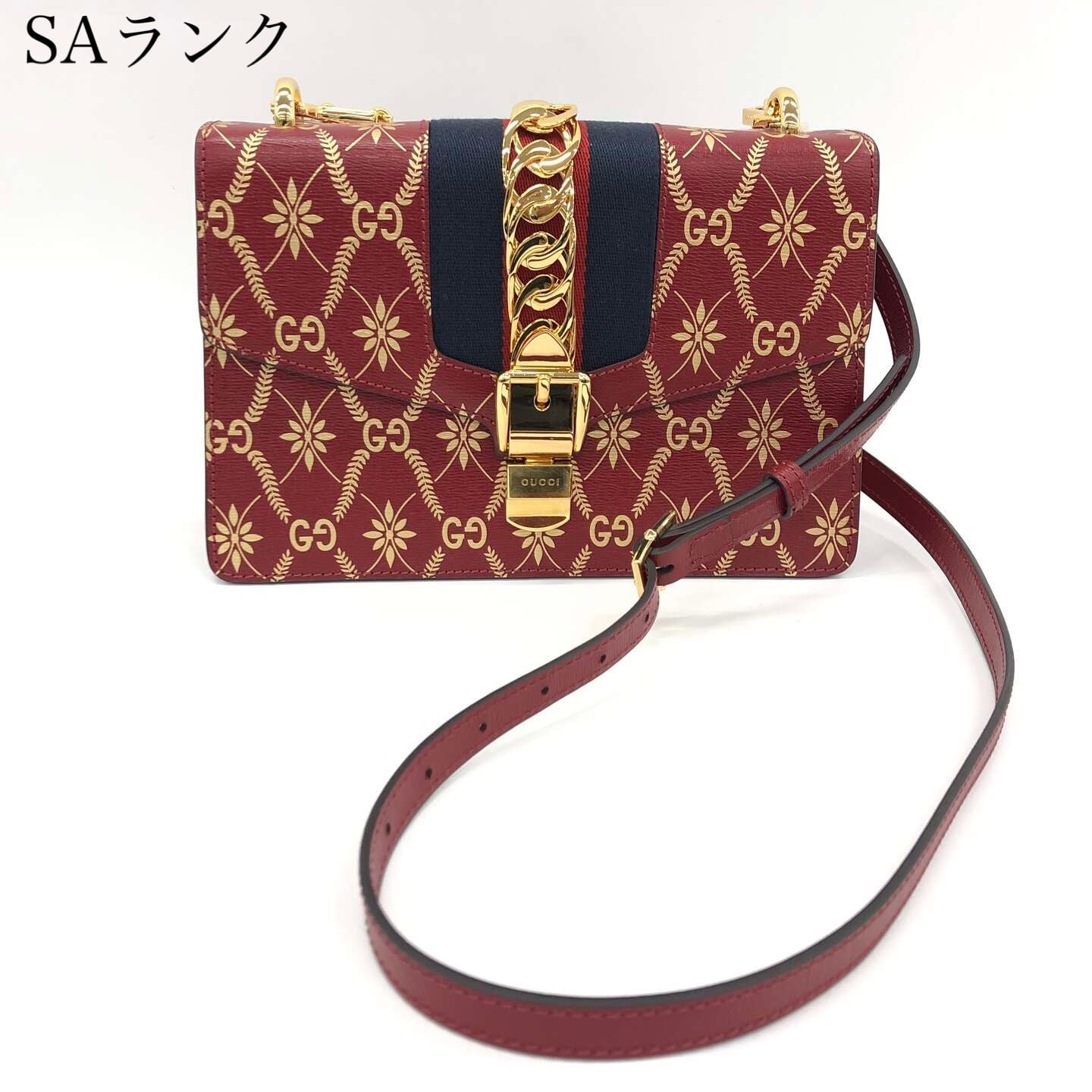 GUCCI グッチ シルヴィ シェリーライン GG柄 ショルダーバッグ レザー レッド マルチカラー